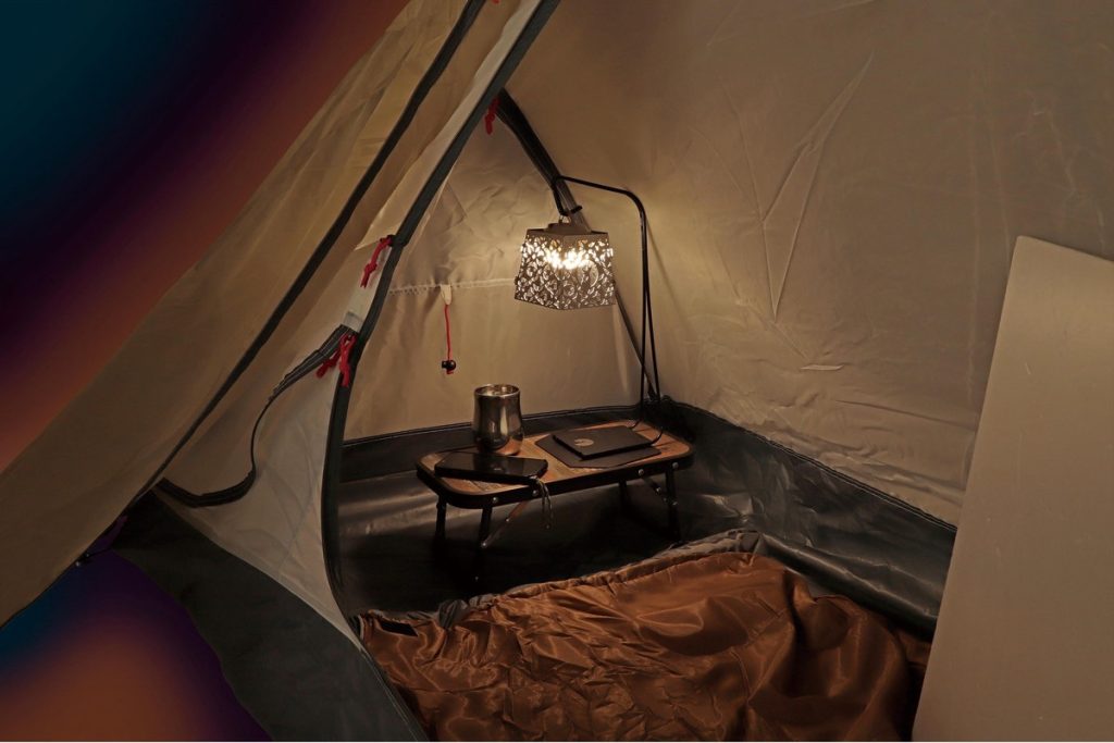秋の涼しさを感じる通気性の高いテントのほか、