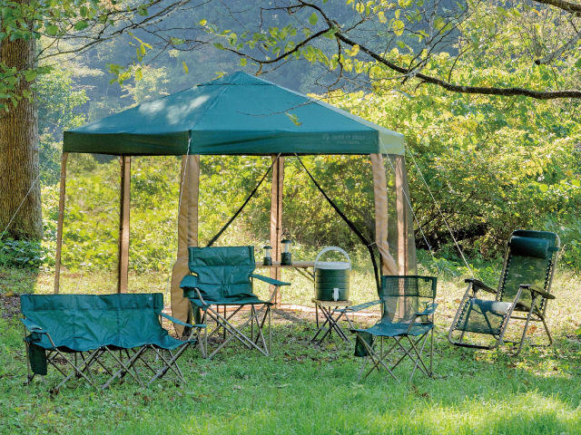 秋の涼しさを感じる通気性の高いテントのほか、