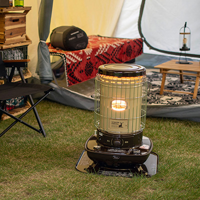 屋内での使用のほか、安全にお使い頂ける機能を備えたテント内での使用が可能です。