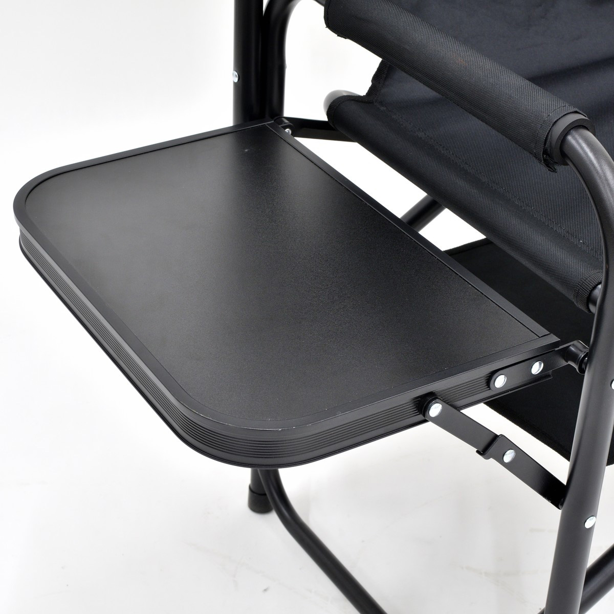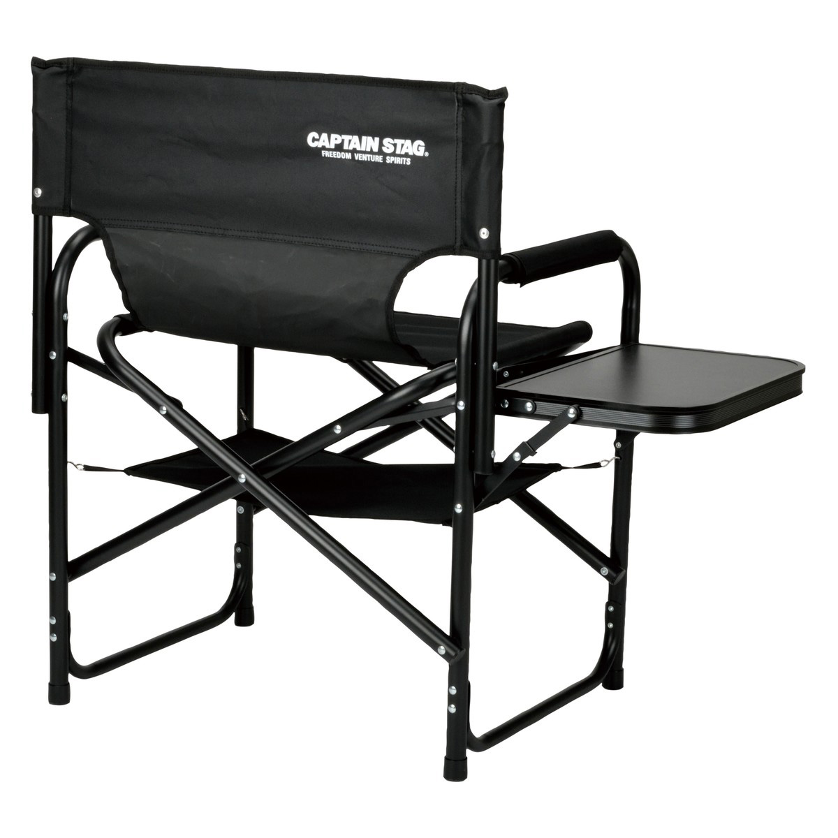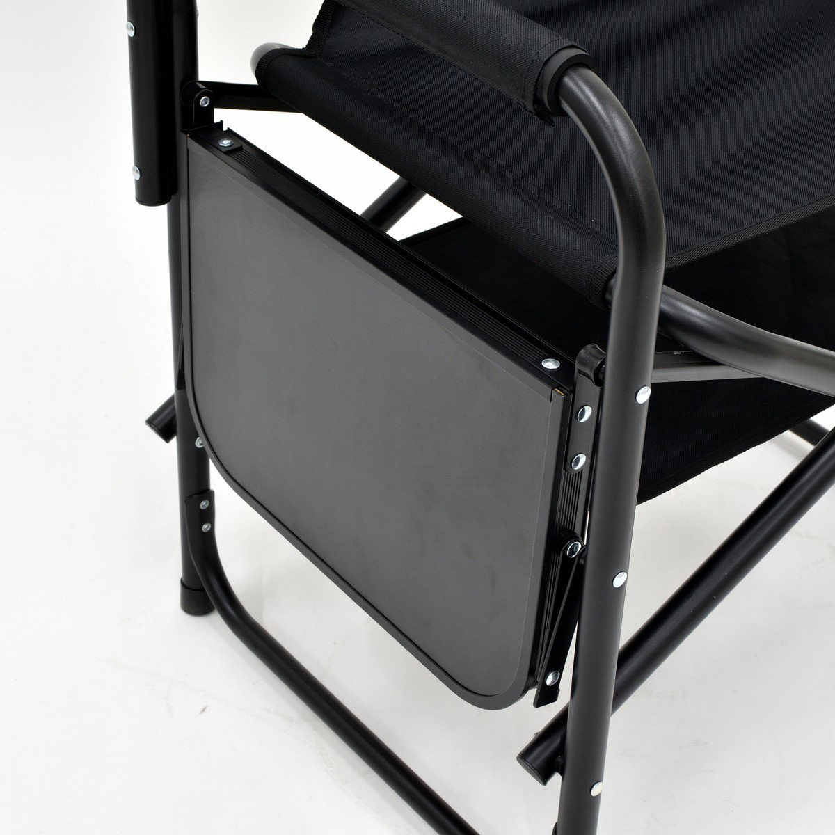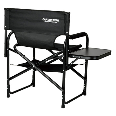 UC-1920 棚モック付きアルミディレクターチェア(ブラック)<サイドテーブル付>