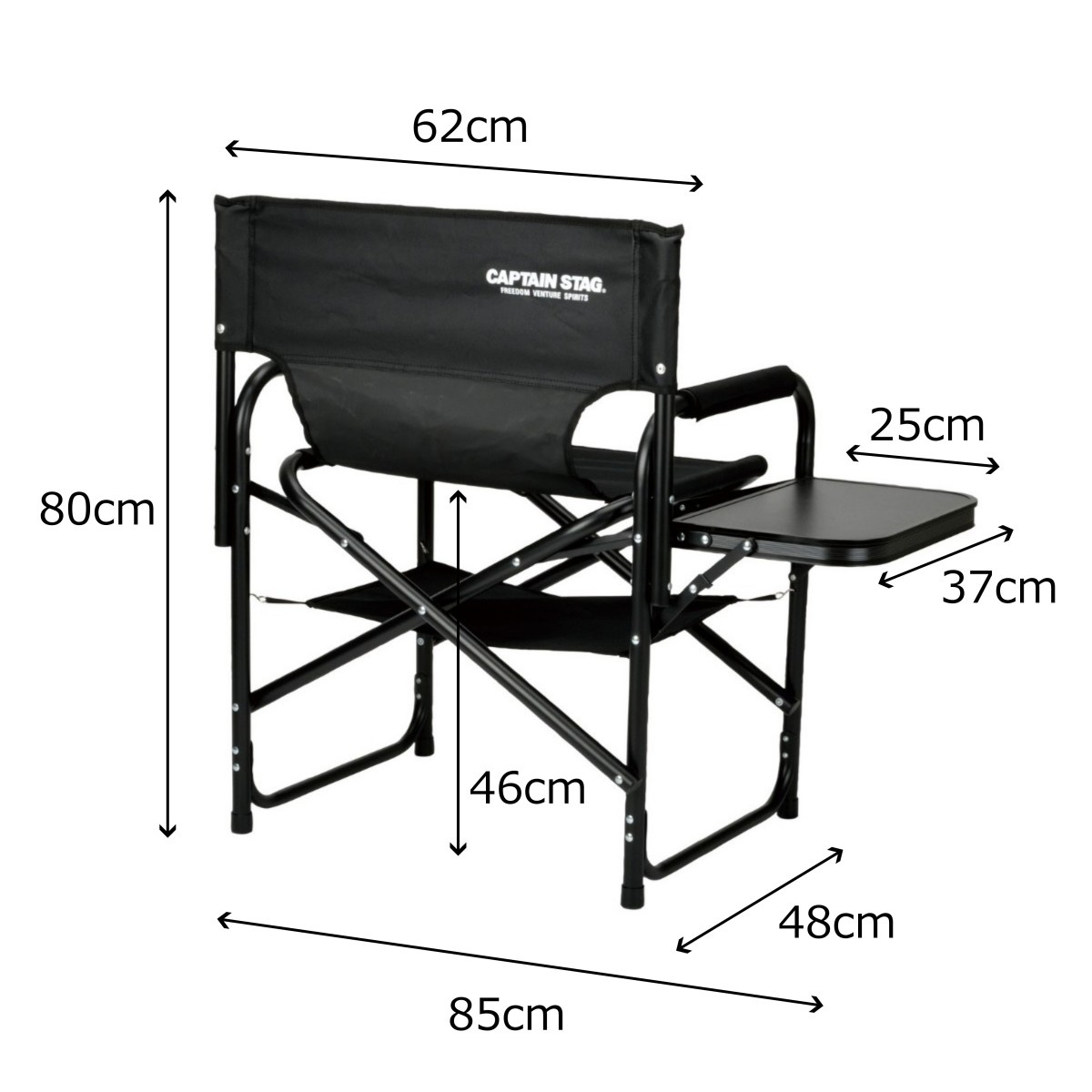 棚モック付きアルミディレクターチェア(ブラック)<サイドテーブル付>