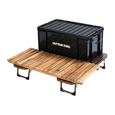 テーブルを2台使用してコンテナ台にできます。板を置いて広いテーブルとしても使えます。