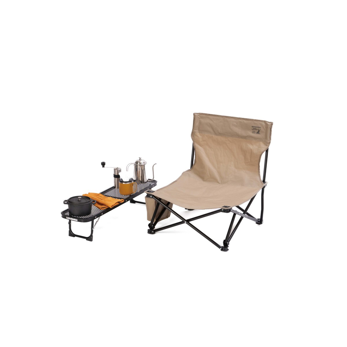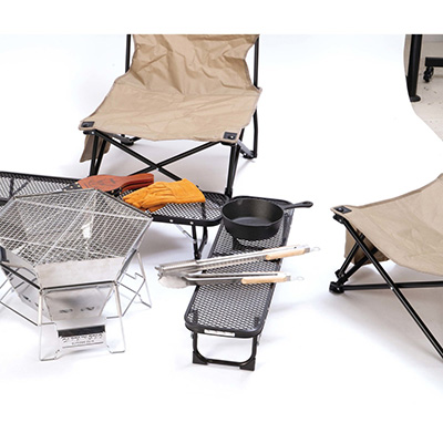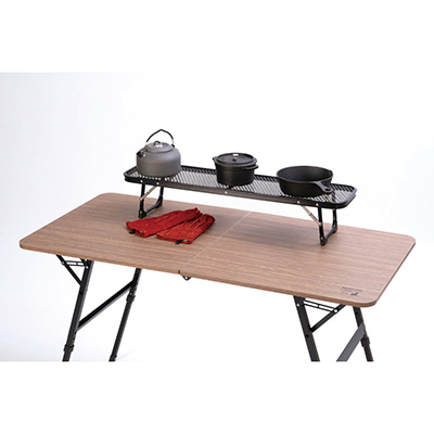 焚き火周りで、ちょこっと使える便利なロングメッシュテーブル。