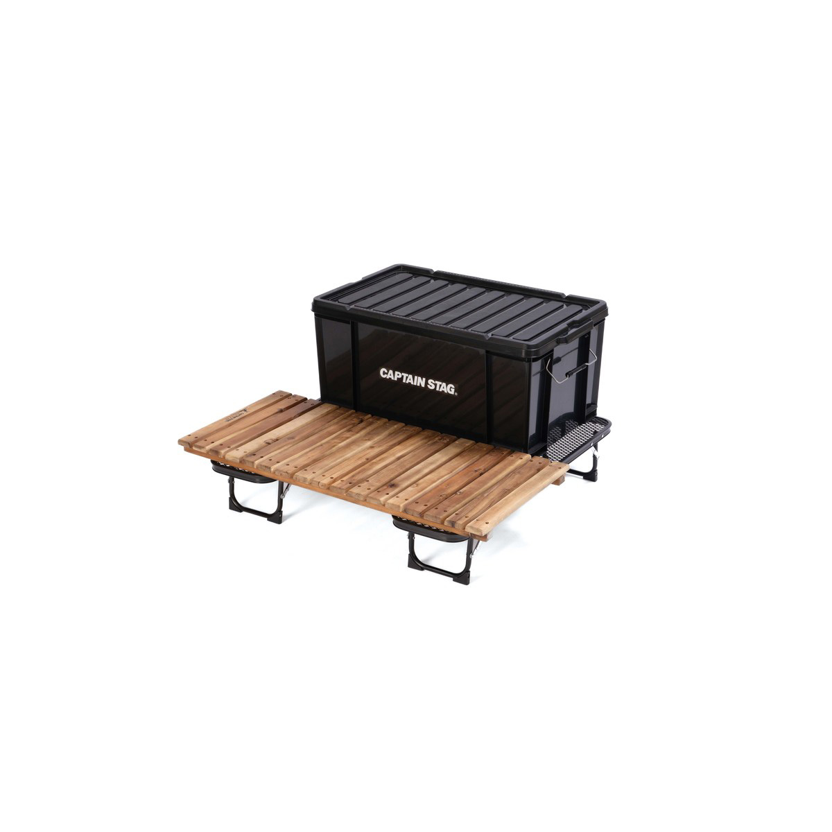 テーブルを2台使用してコンテナ台に、板を置いて広いテーブルとしても使えます。