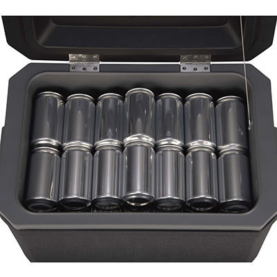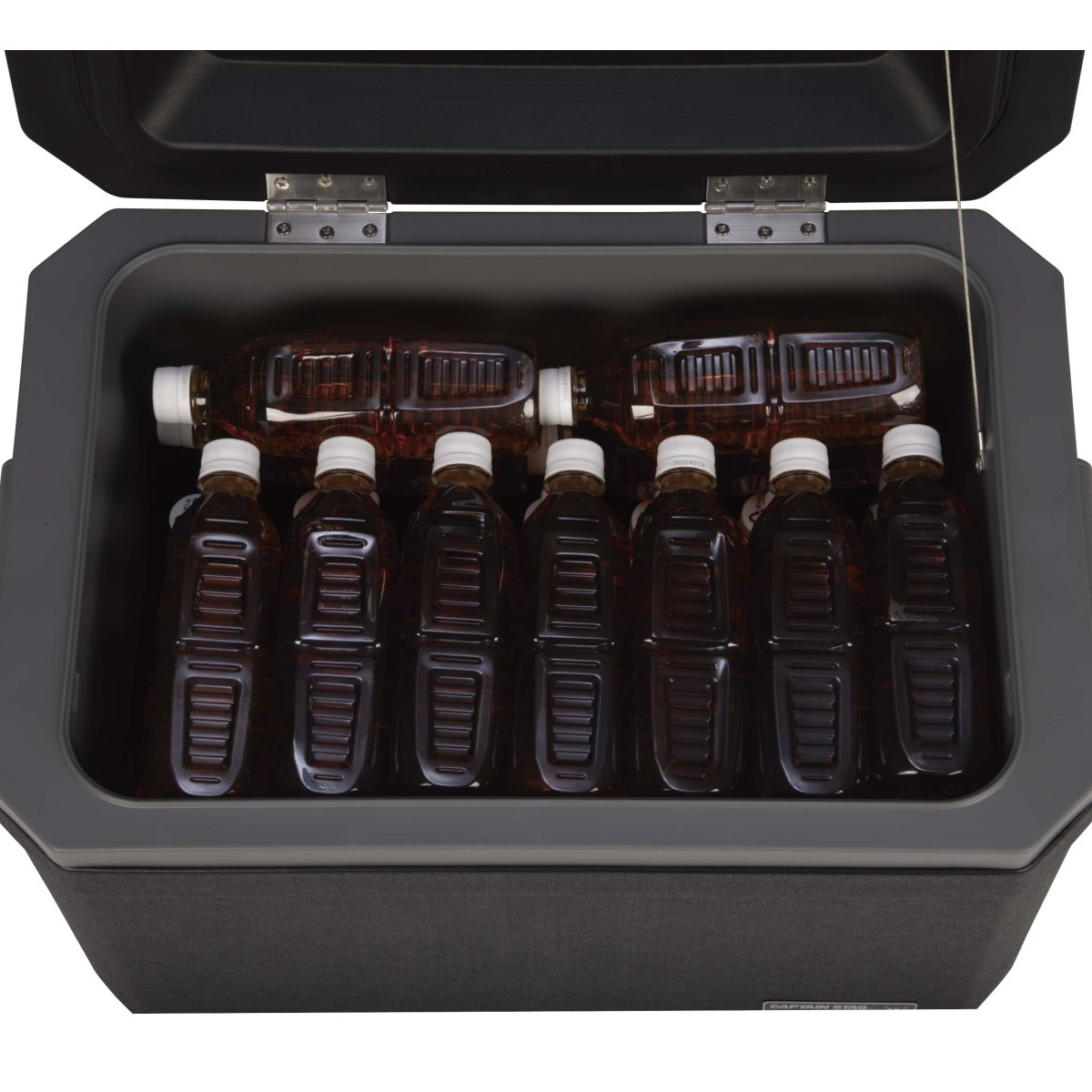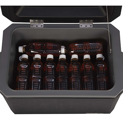 | 仕様/その他 | 耐熱温度:80度、耐冷温度:-10度 保冷効力/4度以下(8時間) 収納目安/350ml缶:70本、500ml缶:50本、500mlペットボトル:53本、2Lペットボトル:12本 ※形状によっては上記の本数が入らない場合があります。収納本数は目安です。保冷剤を入れた場合は異なります。 保冷材の使用目安(当社保冷剤):UE-3022×2 または UE-3021×2、UE-3020×2 ※クーラーボックスの内側上面に敷き詰められる程度の数量が適量数。 |