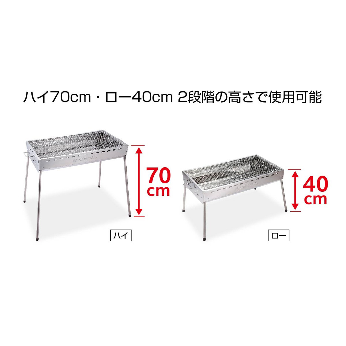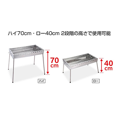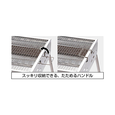 | 材質(品質) | 本体・脚部・ハンドル:ステンレス鋼 バーベキューアミ:鉄(クロムめっき) |