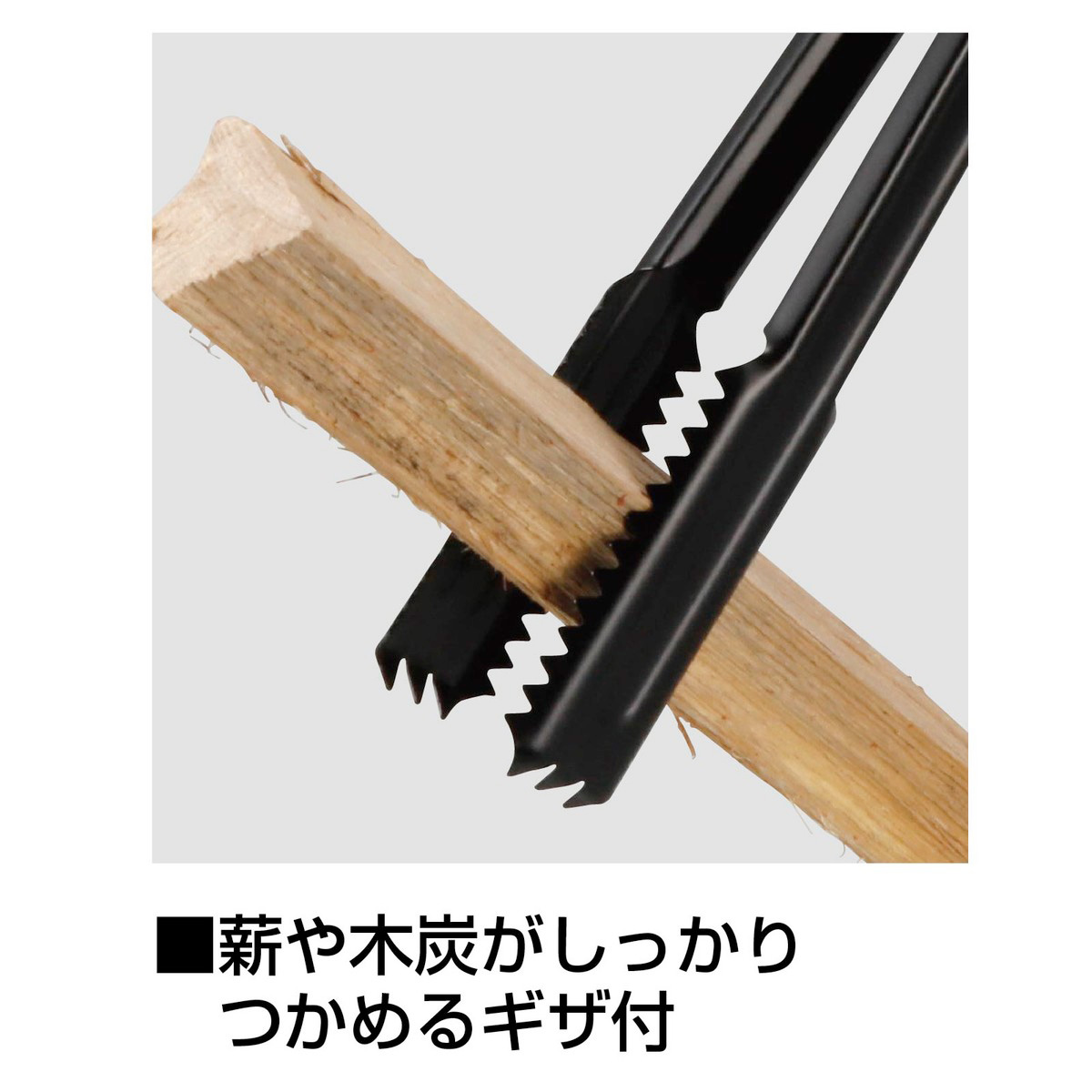 薪や木炭がしっかりつかめるギザ付き炭バサミです。