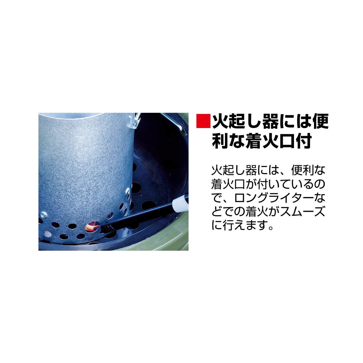 火起し器ごと火消しすることで、再利用の際は取り出してセットするだけでOK。