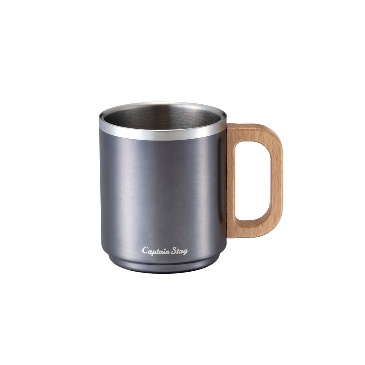 温かい飲み物が冷めにくいダブルステンレスマグカップ。