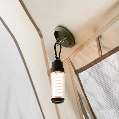 強力な磁石でテントやタープの生地を挟んで使用できるマグネットフック。