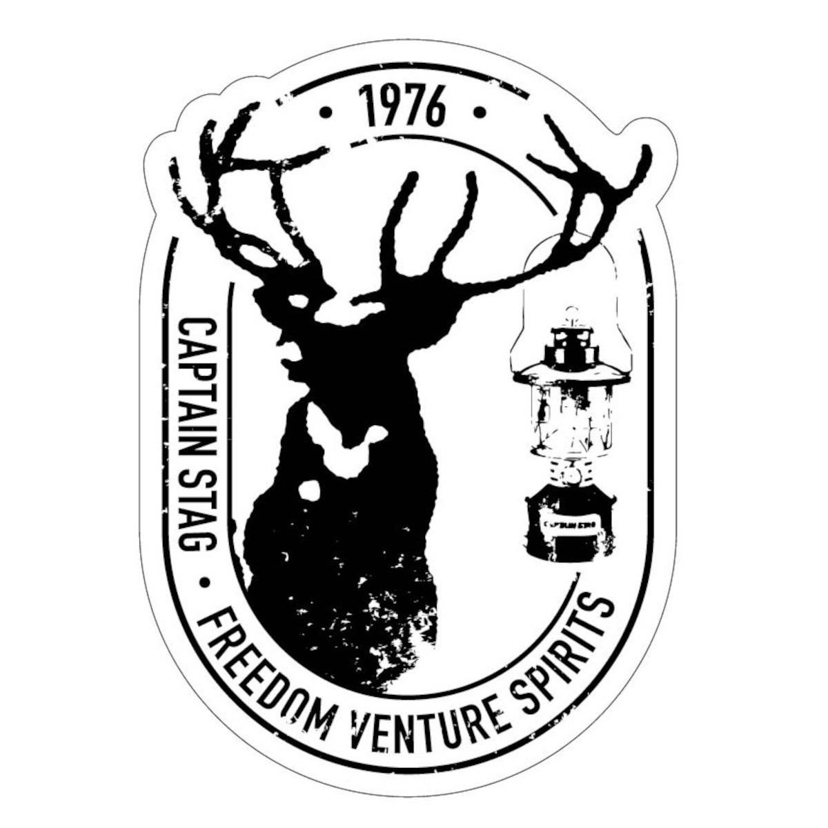 キャプテンスタッグの象徴である鹿とオイルランタンをデザインしたオーバル型ステッカー。