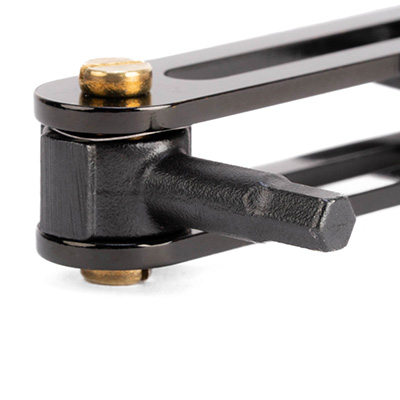 ブラックモデルでは、プレート部分にイオンプレーティング、工具部分に黒染め(クロムモリブデン鋼の黒錆処理)を施し、全体をブラックカラーで統一しています。