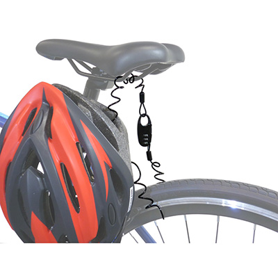 暗証番号の変更が可能な3桁ダイヤル式のコイルワイヤーロック。