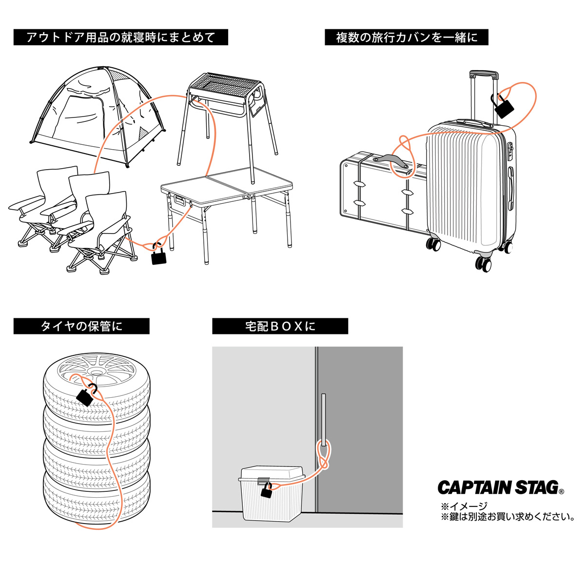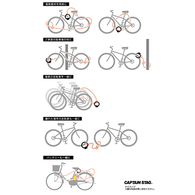 短いワイヤーロックと併用して、いろんな場所を一度にロック。