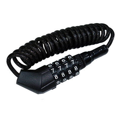 4ダイヤルワイヤーロック 90〈φ6mm-99cm/可変式ダイヤル/コイルワイヤー〉(ブラック)
