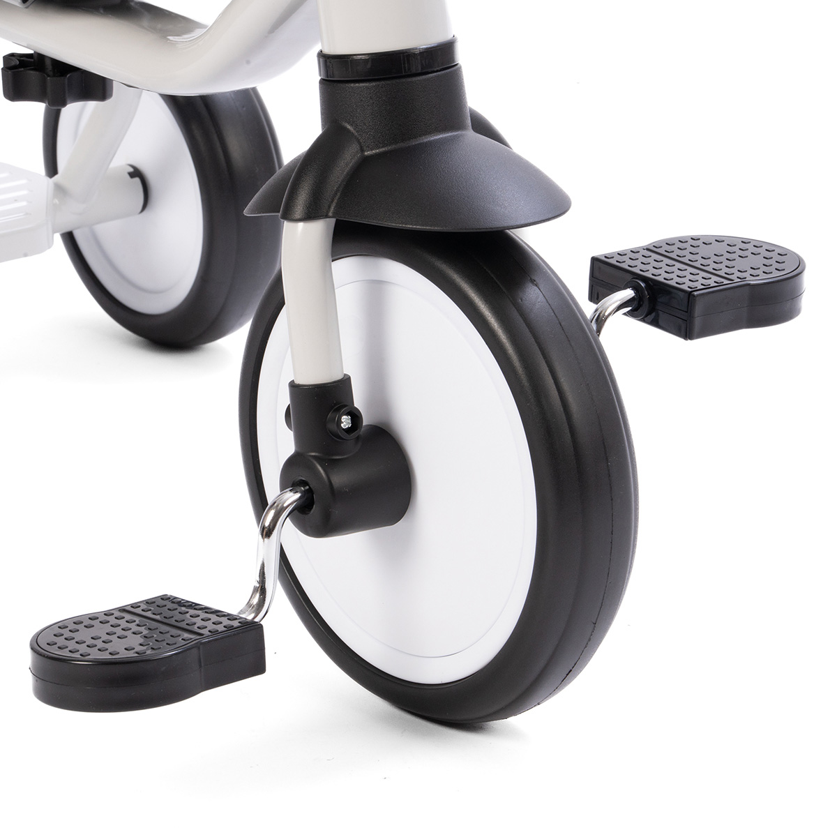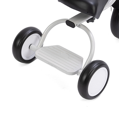 前後ホイールはカバー付きで安心設計。EVAタイヤ採用により、走行音が静かです。