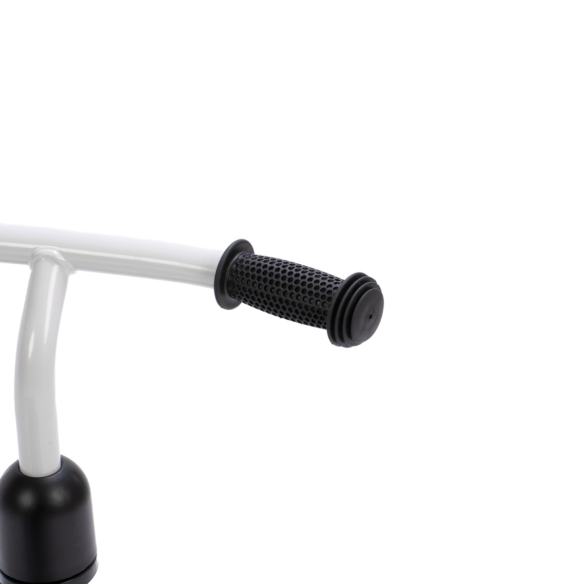 | 材質(品質) | フレーム=鉄 サドル=表皮:ポリ塩化ビニル、クッション部:ウレタンフォーム、レール部:鉄 グリップ=TPR 車輪=ホイール:PP、タイヤ:EVA |